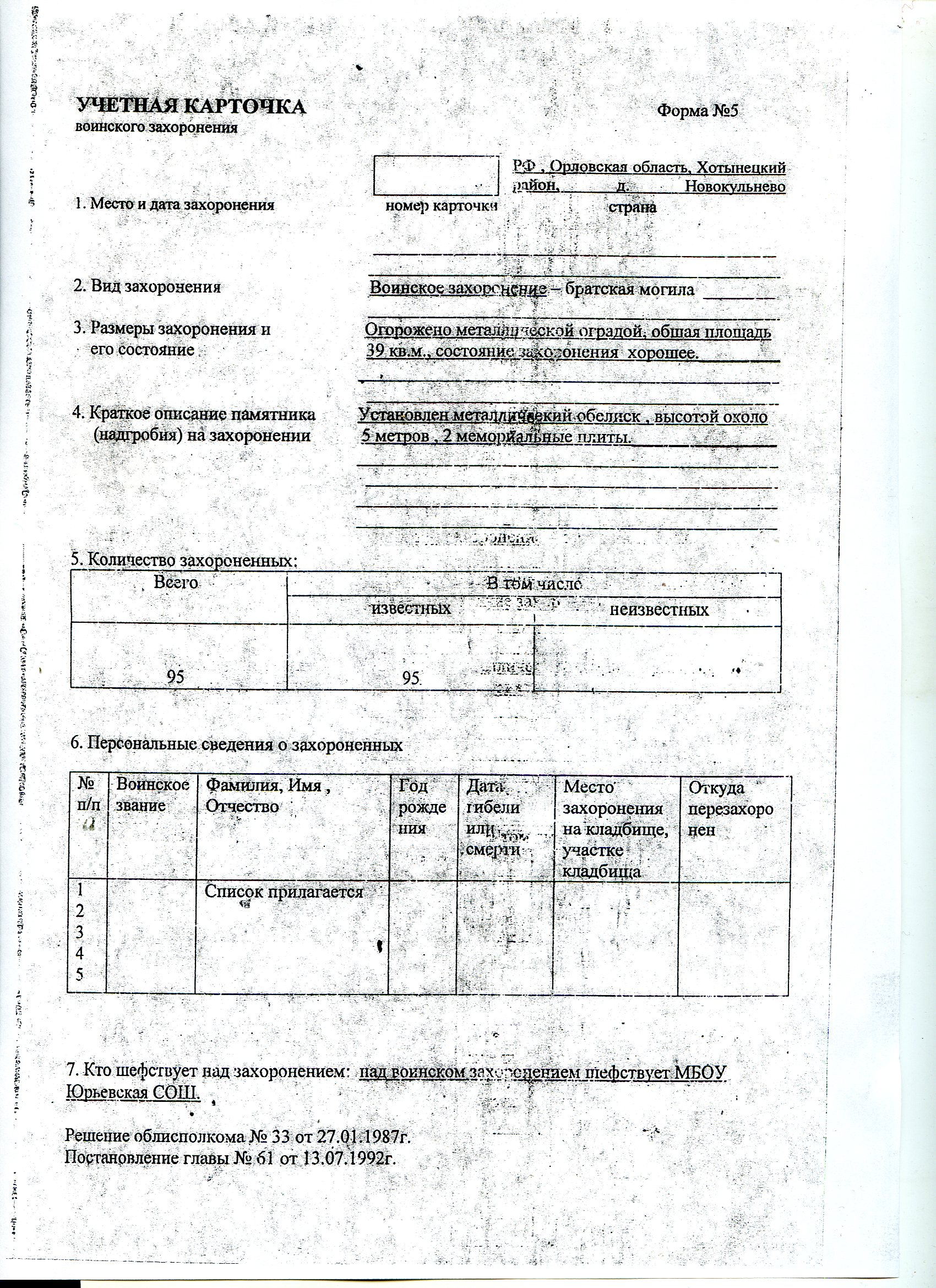 Ïåðñîíàëüíûå äàííûå î çàõîðîíåííûõ íà áðàòñêîì çàõîðîíåíèè