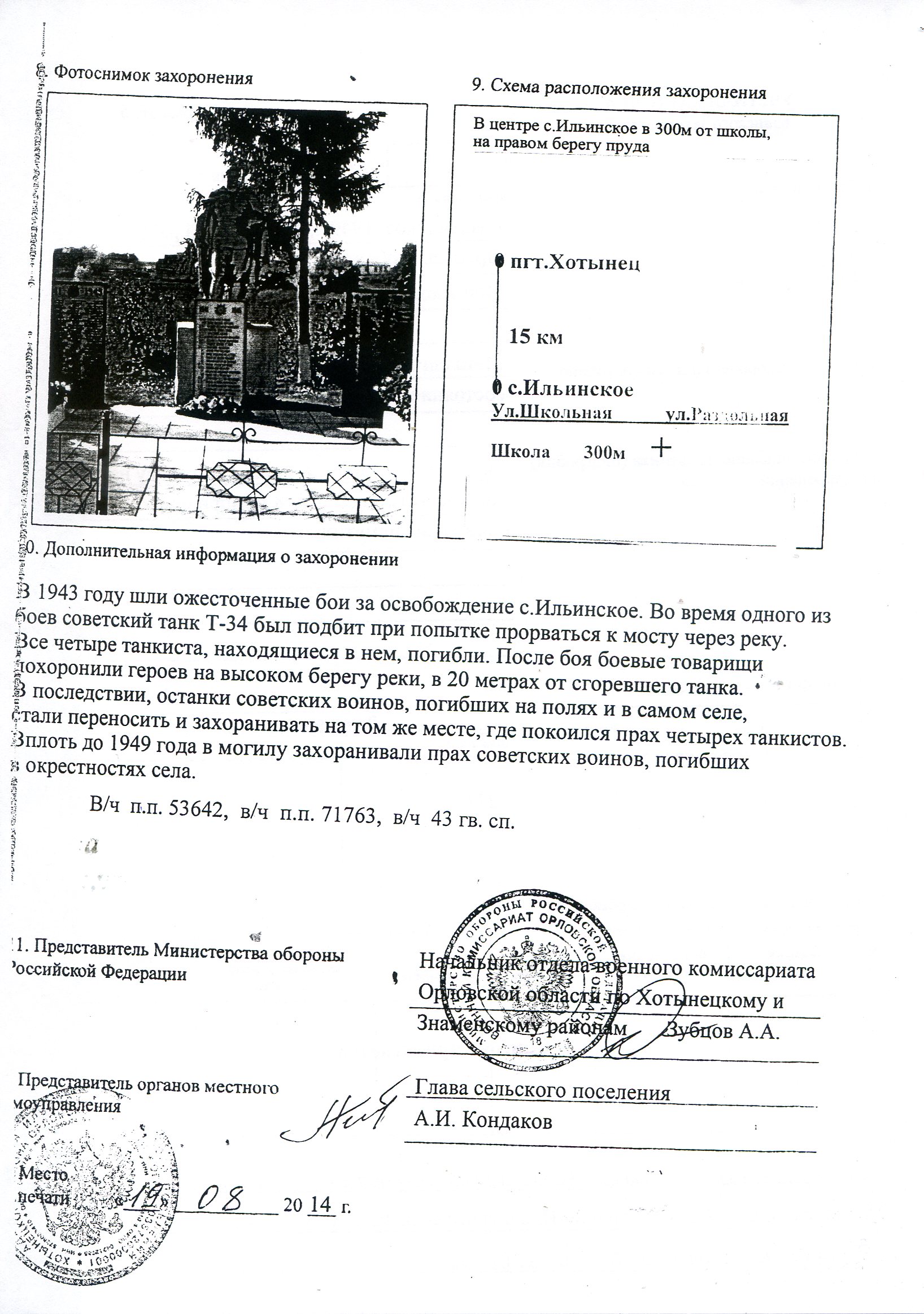 Список воинов, захороненных в братской могиле №1 с.Ильинское Хотынецкого района Орловской области
