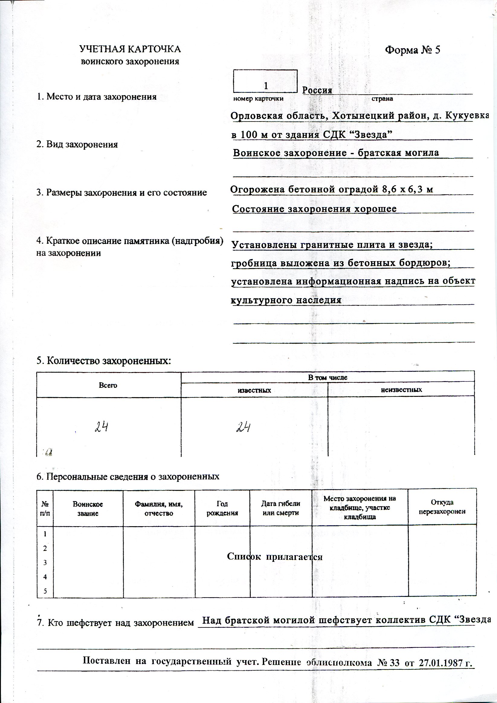 áðàòñêîé ìîãèëå, ðàñïîëîæåííîé â ä. Êóêóåâêå ïîõîðîíåíû 25 ñîëäàò è îôèöåðîâ.