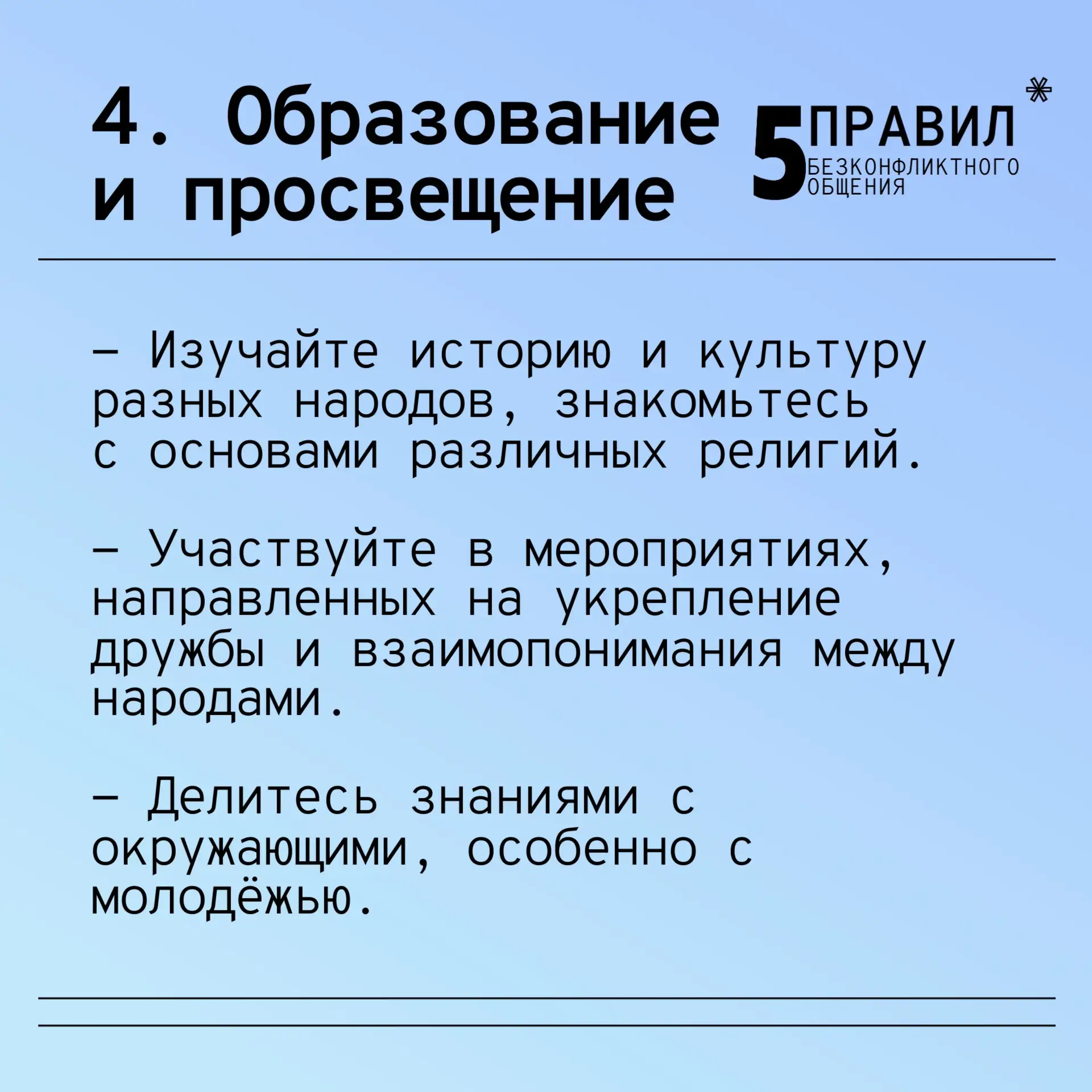 Согласие между народами и религиями — основа мира и безопасности. Оно снижает конфликты, способствует доверию и сотрудничеству, что развивает экономику, науку и культуру.