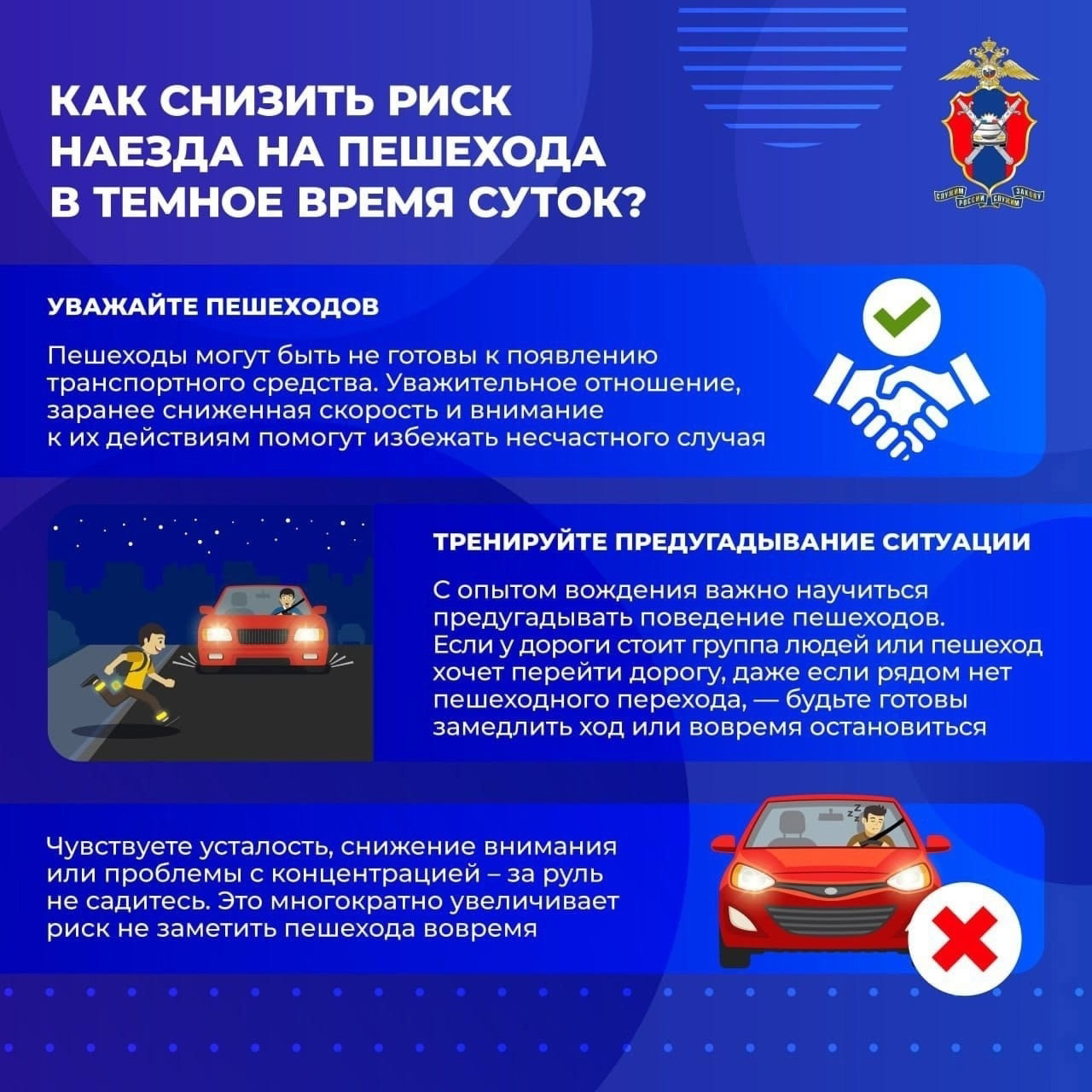 ➡️Ñåãîäíÿ â íàøèõ êàðòî÷êàõ ðàññìîòðèì, êàê ñíèçèòü ðèñê íàåçäà íà ïåøåõîäà â òåìíîå âðåìÿ ñóòîê, - ÷òî íóæíî çíàòü è íà ÷òî îáðàòèòü âíèìàíèå.