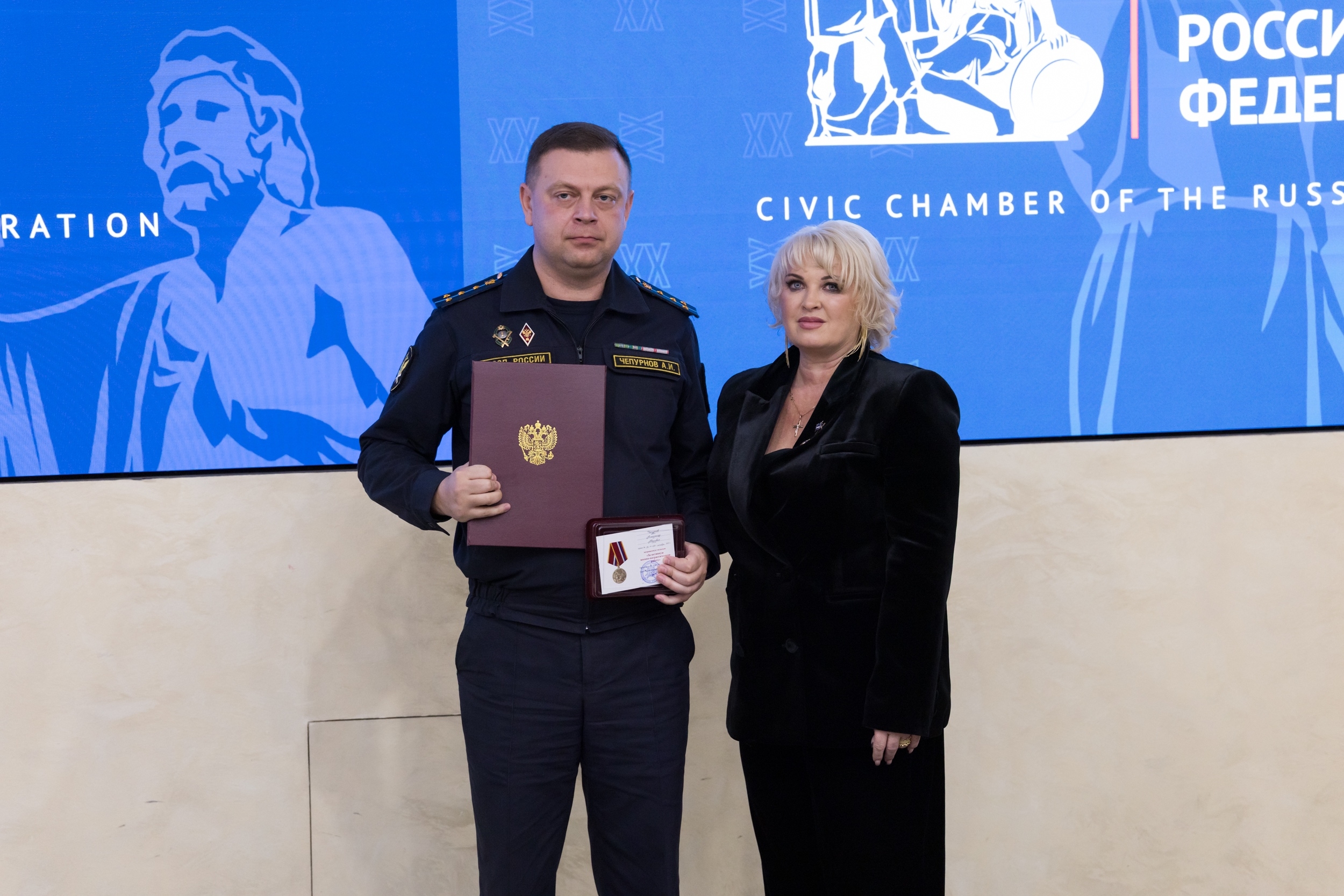 Íàêàíóíå â Ìîñêâå â Îáùåñòâåííîé ïàëàòå Ðîññèéñêîé Ôåäåðàöèè íàøåìó êîëëåãå -êàïèòàíó âíóòðåííåé ñëóæáû Àëåêñàíäðó ×åïóðíîâó, çàìåñòèòåëþ íà÷àëüíèêà îòäåëåíèÿ îïåðàòèâíîãî äåæóðñòâà ÓÔÑÑÏ Ðîññèè, âðó÷åíà îáùåñòâåííàÿ ìåäàëü "Çà àêòèâíóþ âîåííî-ïàòðèîòè÷åñêóþ ðàáîòó".
