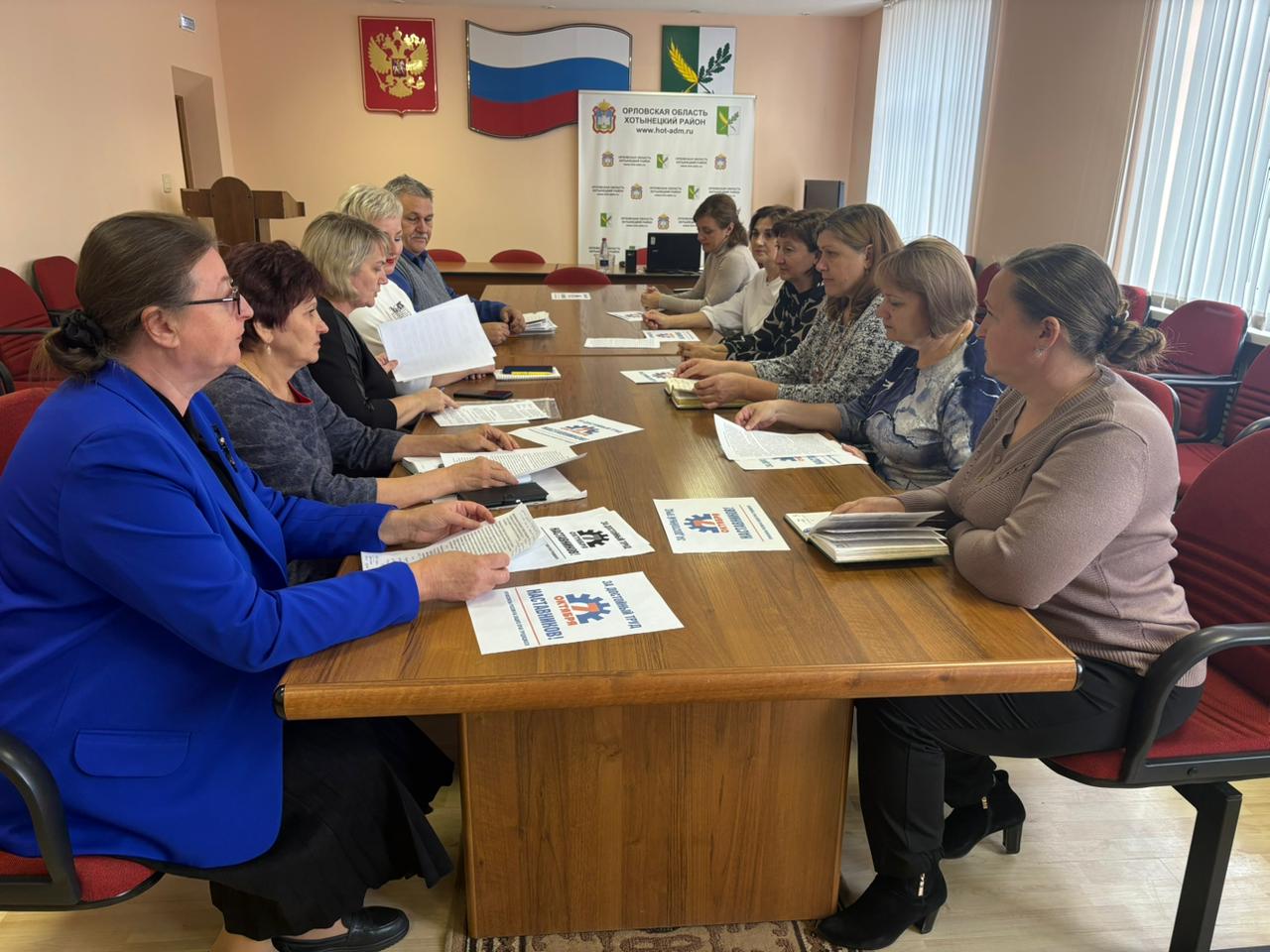 В администрации Хотынецкого района Орловской области 7 октября 2025 года состоялось заседание районной трехсторонней комиссии по регулированию социально- трудовых отношений в Хотынецком районе с участием представителей профсоюзных организаций и их объединений, объединений работодателей, членов комиссии, представителей администрации района.