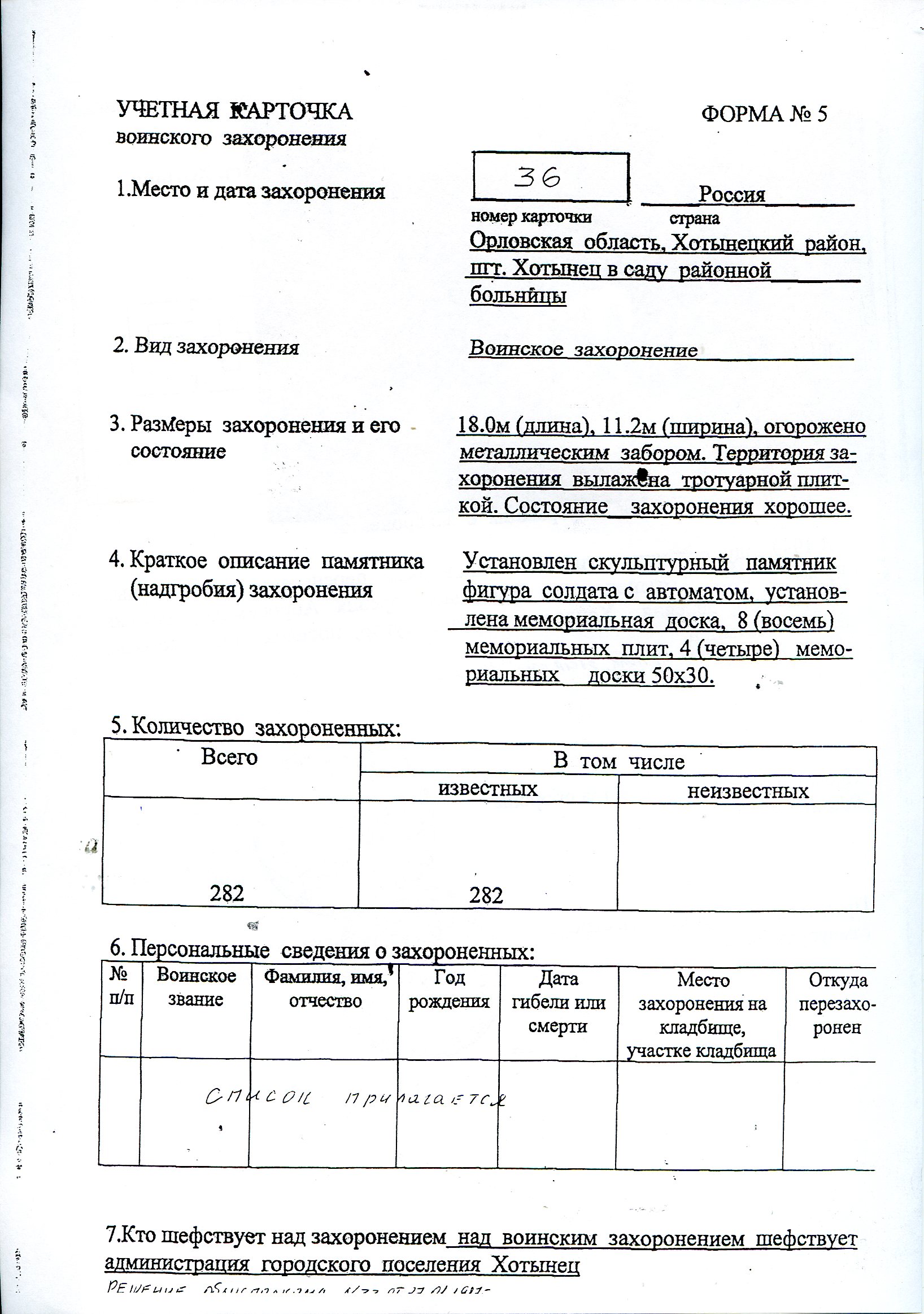 К пункту 6 учетной карточки Персональные сведения о захороненных