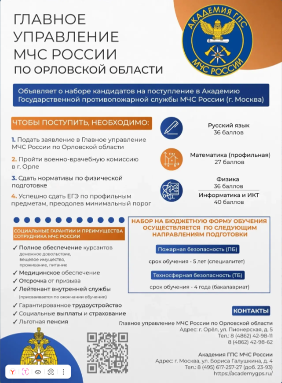 Ãëàâíîå Óïðàâëåíèå Ì×Ñ Ðîññèè ïî Îðëîâñêîé îáëàñòè Îáúÿâëÿåò î íàáîðå êàíäèäàòîâ íà ïîñòóïëåíèå â Àêàäåìèþ Ãîñóäàðñòâåííîé ïðîòèâîïîæàðíîé ñëóæáû Ì×Ñ Ðîññèè (ã. Ìîñêâà)