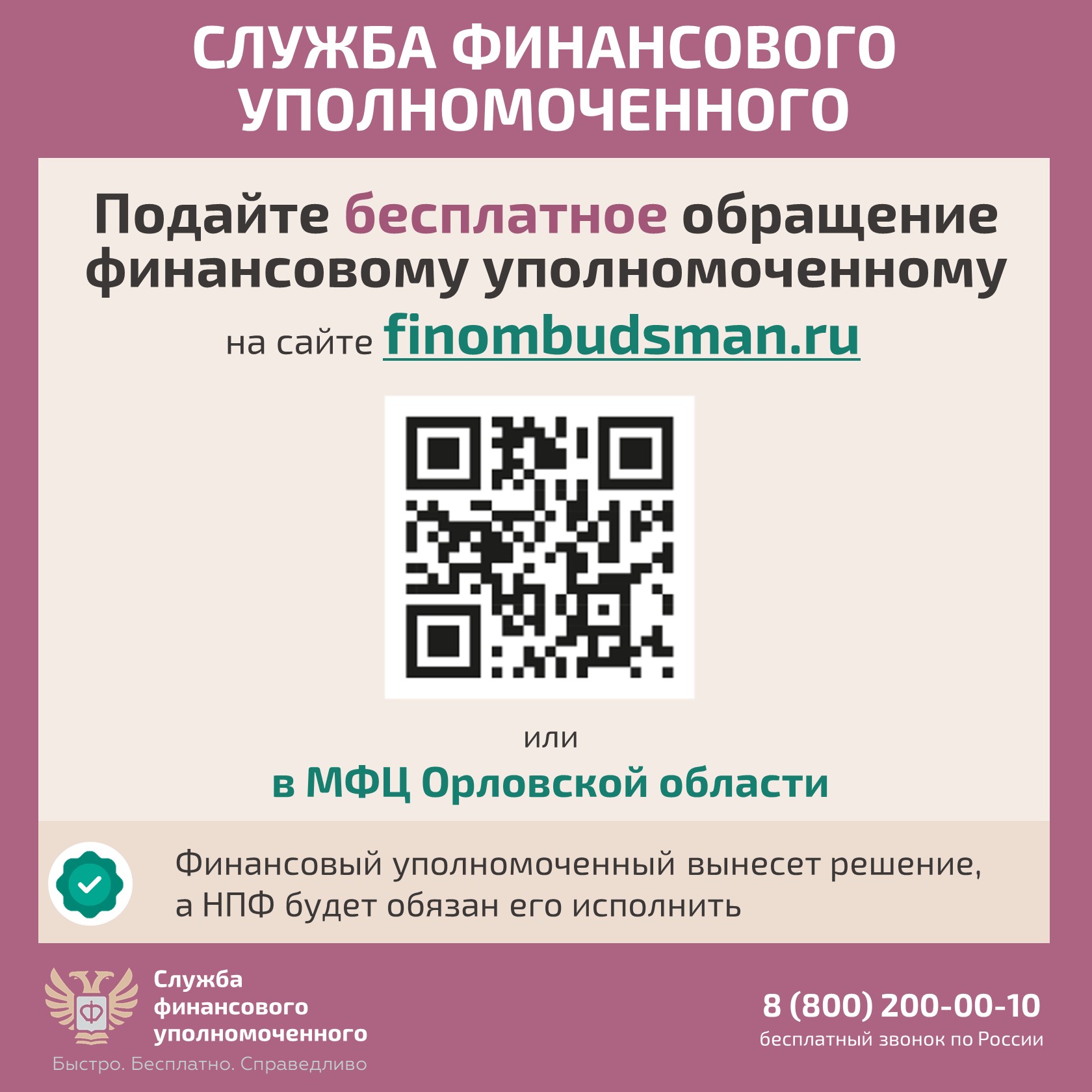 Самое важное: если финансовый уполномоченный примет решение в вашу пользу, негосударственный пенсионный фонд по Закону обязан его исполнить.