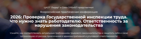 Êîíôåðåíöèÿ: "2026: Ïðîâåðêà Ãîñóäàðñòâåííîé èíñïåêöèè òðóäà. ×òî íóæíî çíàòü ðàáîòîäàòåëþ. Îòâåòñòâåííîñòü çà íàðóøåíèå çàêîíîäàòåëüñòâà"